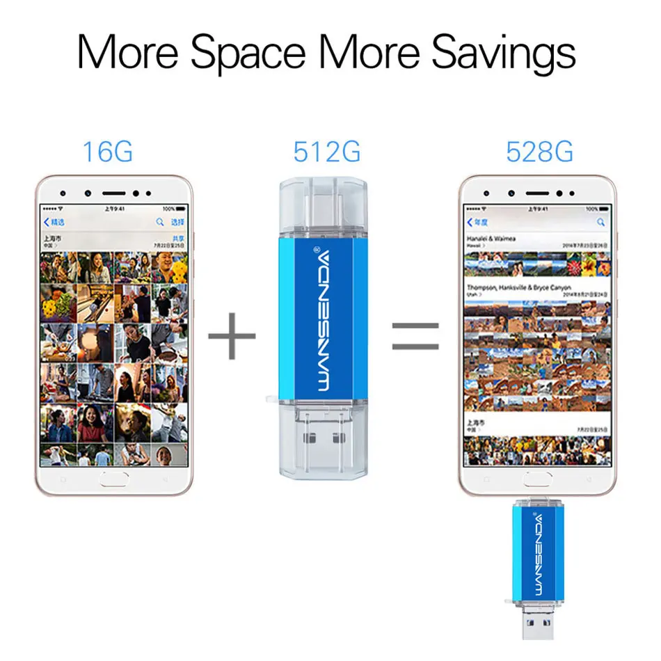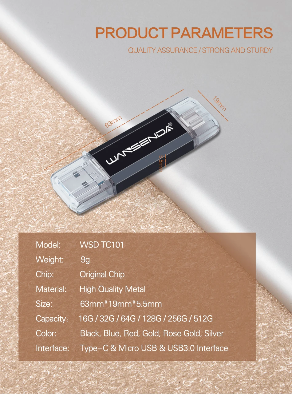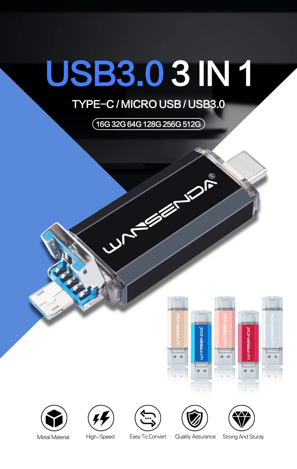 USB-флеш-накопитель WANSENDA OTG, 128 ГБ, Тип C, 32 ГБ, 64 ГБ, 256 ГБ, 512 ГБ, флешка 3 в 1, USB3.0, Type-C, Micro USB, карта памяти