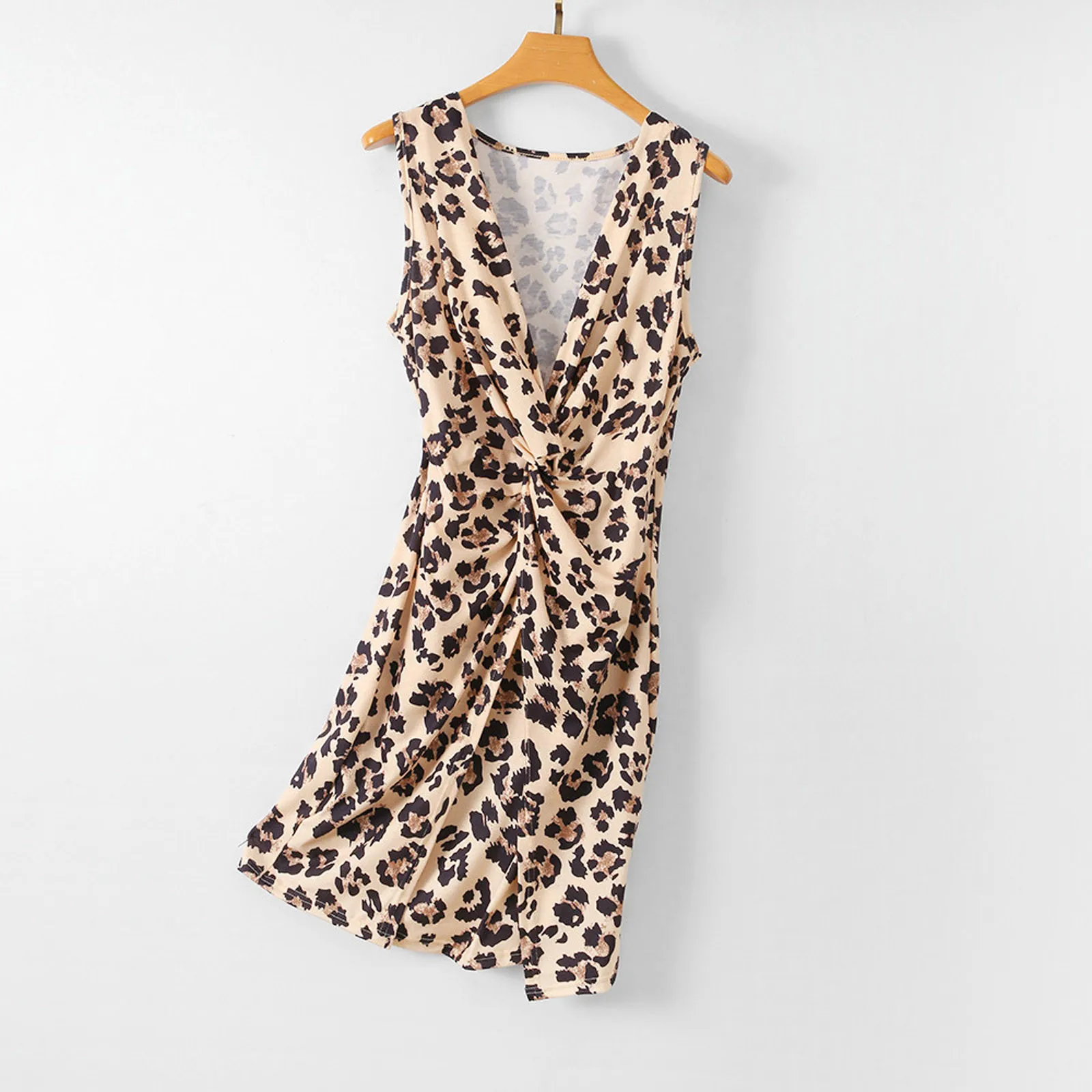 Сексуальное мини-платье с леопардовым принтом и V-образным вырезом, модные Клубные облегающие короткие платья, элегантный пляжный сарафан без рукавов, женская одежда # TG