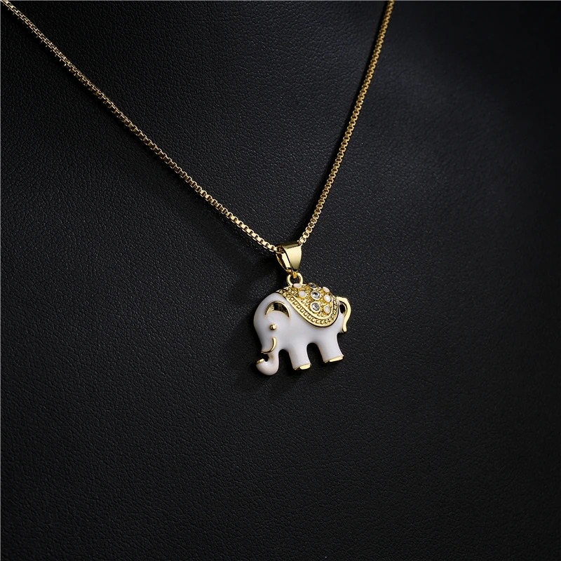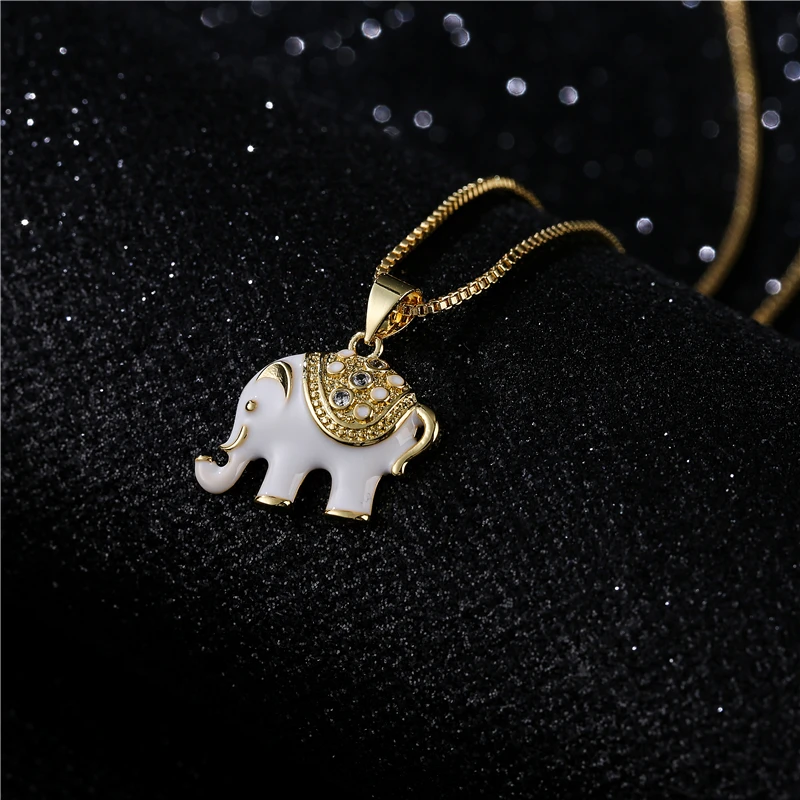 NEWBUY модные золотые Цвет коробка цепочка, колье из белогочерного цвета в виде капель масла Слон ожерелье с подвеской для женщин и девушек, CZ Femme Bijoux (украшения своими руками)