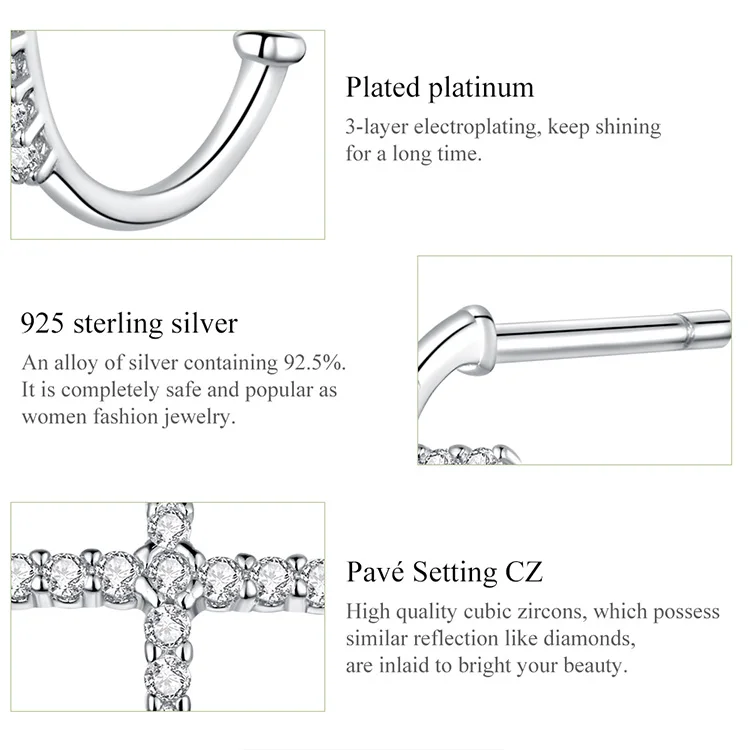 BAMOER CZ серьги-гвоздики 925 пробы серебро Платиновое Покрытие кру...
