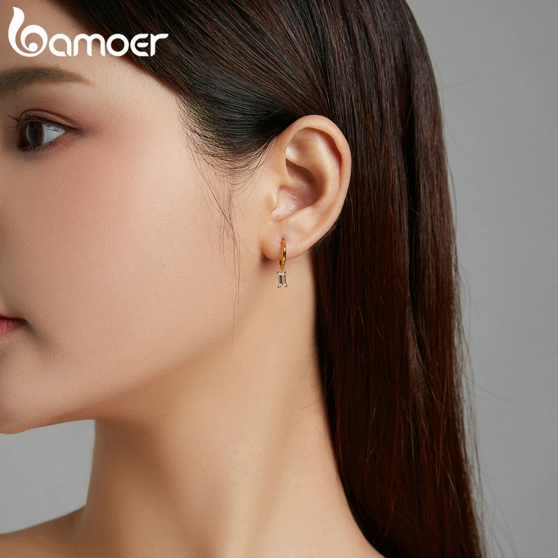 Серьги bamoer Huggie, покрытые платиной, 925 пробы, серебряные серь...