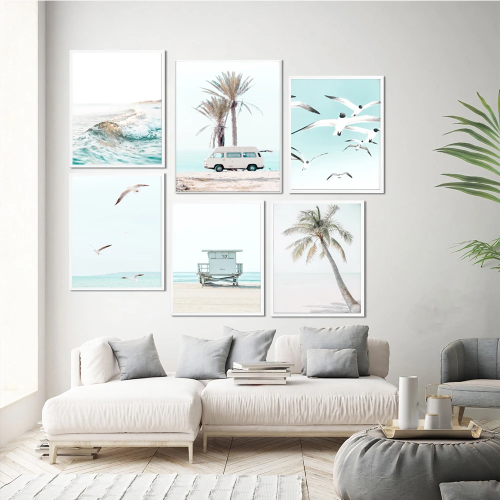 Пастельный пляж Холст Картина автомобиль очки летние плакаты Бохо п...