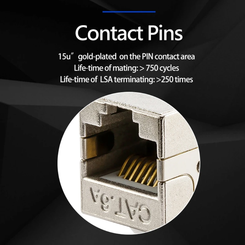 Позолоченный модуль домкрата keystone Cat6/Cat6A из цинкового сплава характеризуется антикоррозийным защитным корпусом из цинкового сплава и защитной структурой из чистой меди со стабильными и защищающими от помех функциями.Поддерживает передачу по сети до 1G 250 МГц, идеально подходит для вашей сети Gigabt.Позолоченный на контактах (материал из фосфористой бронзы), 50 дюймов, циклы сопряжения> 750 раз трапецеидального разъема, полностью экранированный, соединение RJ45-LSA без инструментов.Простая установка и регулируемые Кабельные зажимы гарантируют подходящий размер кабелей.С прозрачными изоляционными деталями внутри корпуса, чтобы избежать проблемы «короткого замыкания» между концами проводов и металлическим корпусомСпецификация: