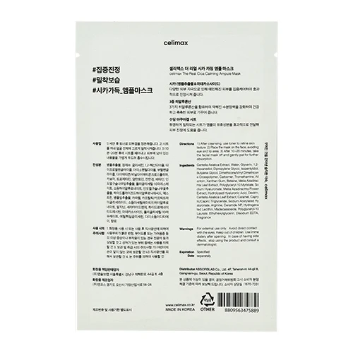 Маска для лица CELIMAX с экстрактом центеллы азиатской (успокаивающая) 27 мл, Тканевая, Питание
