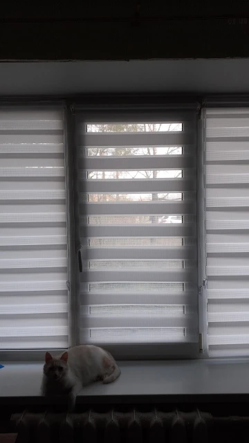 Упаковка надёжная, на окне смотрится отлично, удобно что три способа использования, день-ночь и можно убрать наверх полностью, крепление на раме не мешает.