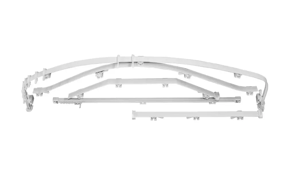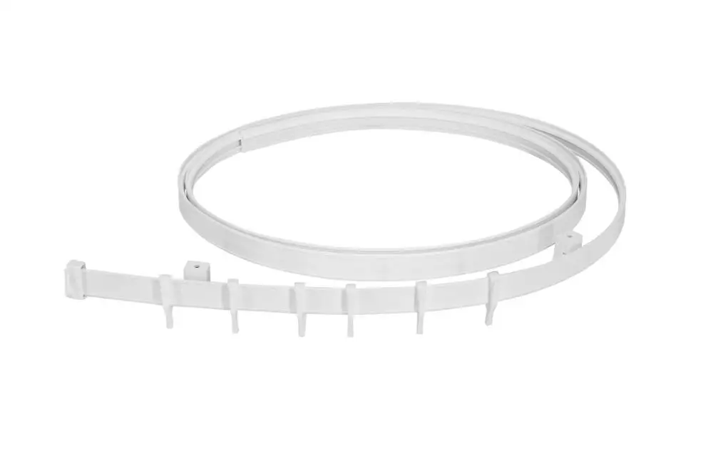 Если вам нужно повесить шторы на оконное отверстие с нестандартной изогнутой формой, традиционные стержни из дерева или металла для этого не подойдут. В этих случаях стоит купить гибкий карниз. Это алюминиевая или полимерная пластина, которая может сгибаться без риска повреждения. В этом руководстве есть прорези для подвижных крючков с тканевой подвеской на них. Стандартный комплект также включает торцевые вилки, которые придают дизайну полный и аккуратный вид.