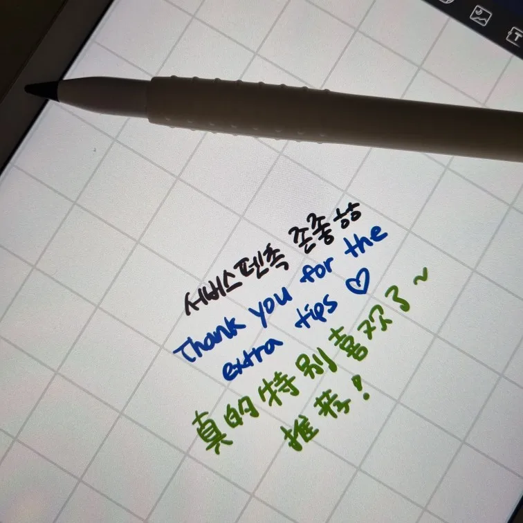 12월 1일 도착예정일이었는데 그보다 훨씬 빨리 도착했습니다. fast delivery~~♡♡ 2B가 삼성 S펜만큼 필기감이 부드러운 것은 아니에요. 하지만 정품 펜촉보다 딱딱하다는 느낌을 덜 받았고, 정품보다 가벼운지 그림그릴때 선을 긋기가 편하다는 것을 느끼게 되었어요.