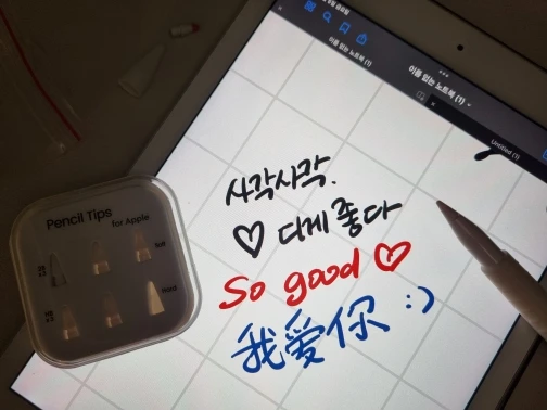 애플펜슬 순정펜촉 딱딱 거려서 불편한 분들 꼭 사셔서 광명 찾으셔야함 저반사필름에 소프트 쓰니까 와우.. 배송도 일주일? 정도 걸린 듯 해외배송치고는 완전 총알배송