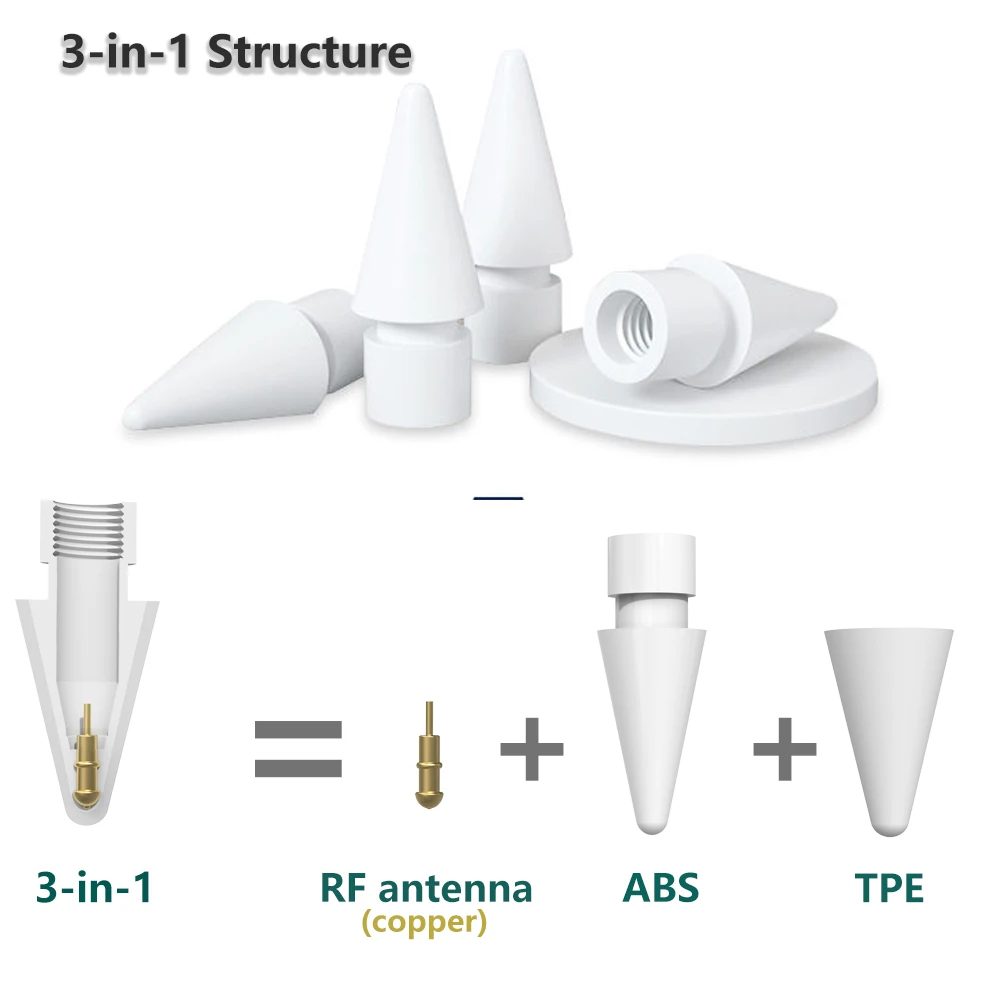 Peilinc Кончики для карандашей Apple Pencil 1-го2-го поколения, двухслойный стилус для iPad, мягкий и твердый, используется в течение 3 лет-6 упаковок