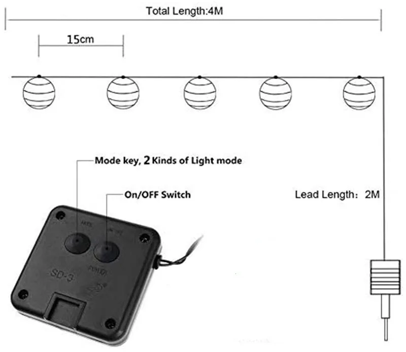 1. Светильник: белый/теплый белый2. Размер:(1) расстояние от панели до первого светодиодный 200 см/78 дюймов, около 15 см/5,9 дюйма между 2 светодиодный s(2) Фонари Размеры: 7,5 см * 7,5*7,5 см3. Режим: устойчивый и мигающий4. Солнечная панель: 2 в 60 мА5. Батарея: AA 600mAh Ni-MH, включая батарею6. Время работы: 8-12 часов (общее время работы более 50000 часов)7. Сертификат: CE, FCC, RoHS