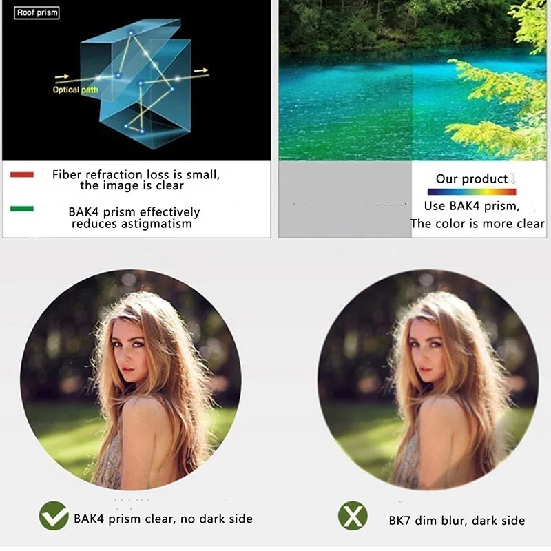 -HD vision монокуляр: призма объектива BAK4 дизайн, давая вам более четкие и красочные пейзажи.