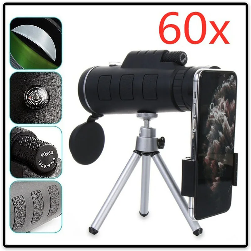 US DE HD регулируемый водонепроницаемый 40x60 фокусирующий зум Мини монокулярный телескоп объектив камеры телескоп для путешествий на открытом воздухе