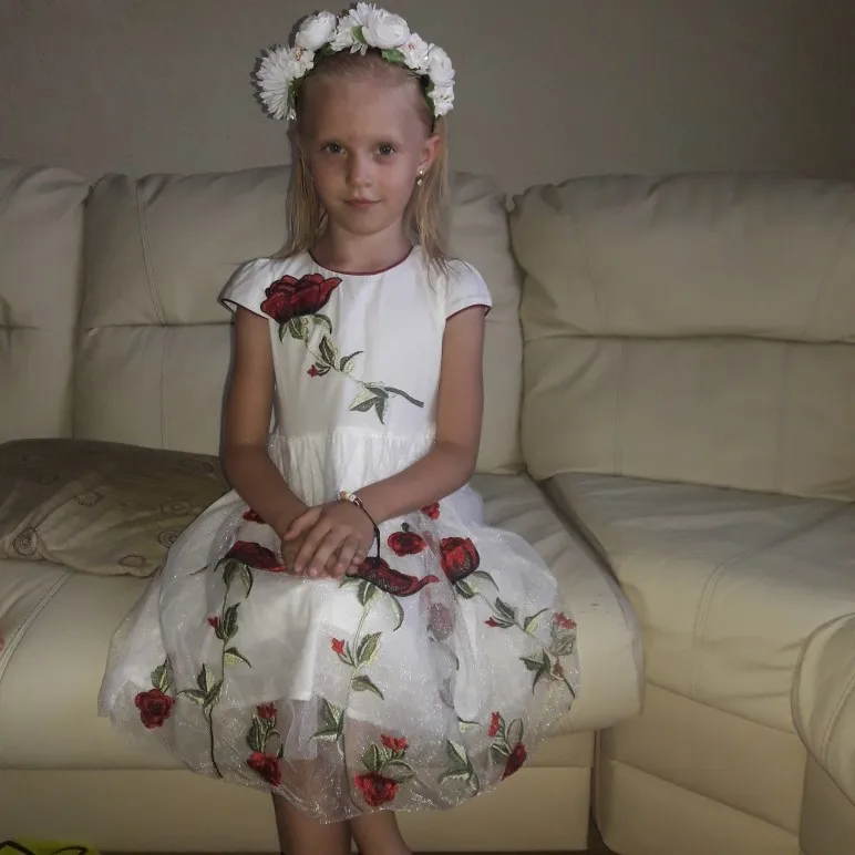 Красивое платье, хорошо пошито, швы ровные, доставка очень быстрая пришло за неделю, покупала на вырост, думаю размеру соответсвует. В жизни оно круче чем на фото! Внизу есть плотная сетка как для кринолина, если распушить можно ещё прибавить объема! спасибо продавцу ща такую красоту!!!!