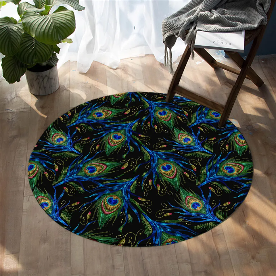 Постельные принадлежности розетка Павлин перо коврик для спальни ацтекский большой ковер синий зеленый Прямоугольный Коврик противоскользящий 3D Печатный домашний декор