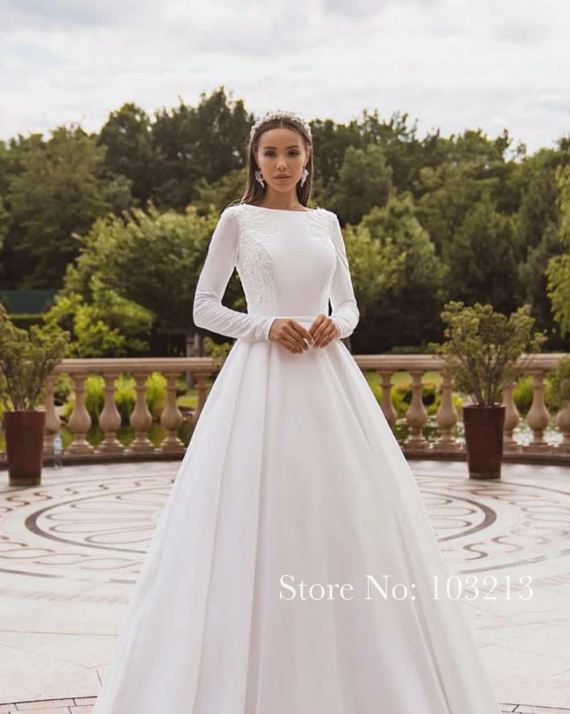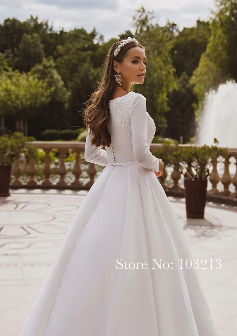 2021 богемные Свадебные платья с вырезом лодочкой, с аппликацией, с аппликацией в виде сатиновое свадебное платье одежда с длинным рукавом развертки Поезд Vestido De Noiva