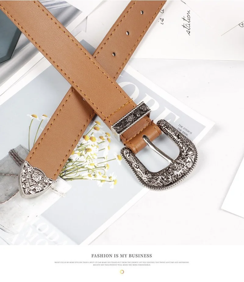 Ремень женский из искусственной кожи, с гравировкой в ретро-стиле