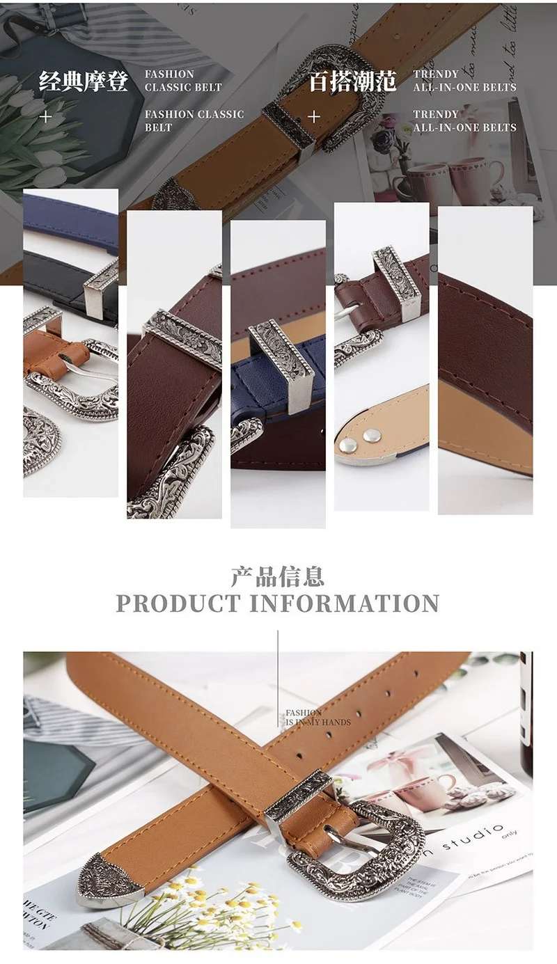 Повседневный Модный Универсальный женский ремень в стиле ретро с гравировкой, неправильной пряжкой, ремень для джинсов, ремень для платья