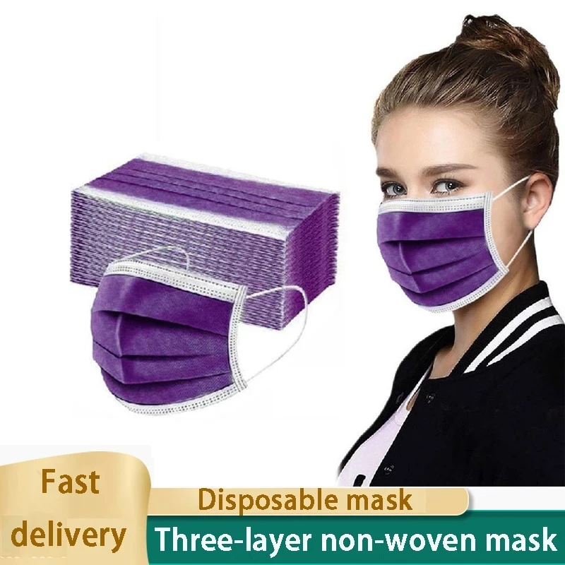Маска одноразовая Нетканая 3-слойная с фильтром, фиолетовая, оранжевая, зеленая, дышащая, 100, 10-разноцветная маска шт.