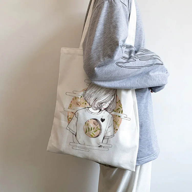 Холщовая женская сумка-тоут в стиле Харадзюку, многоразовая Милая К...
