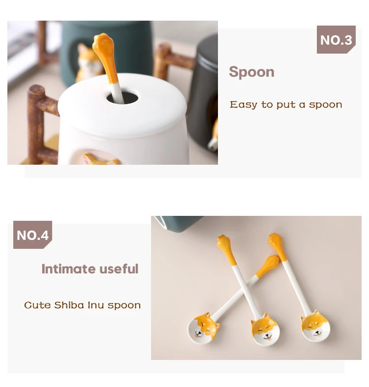 420 мл керамическая кофейная кружка настенная 3D милая Сиба ину с крышкой Ложка чашка для воды пара новый подарок офисная кухонная утварь