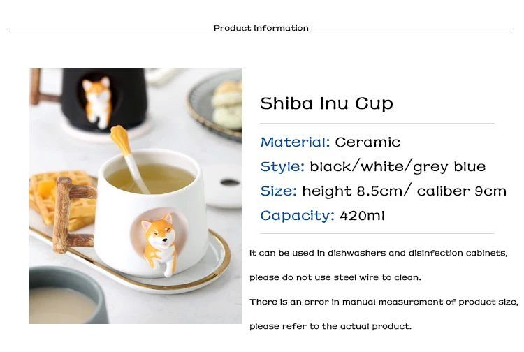 Особенности:Название продукта: милая кружка Шиба инуМатериал: керамикаЕмкость: 420 млРазмеры: 8,5*9 см