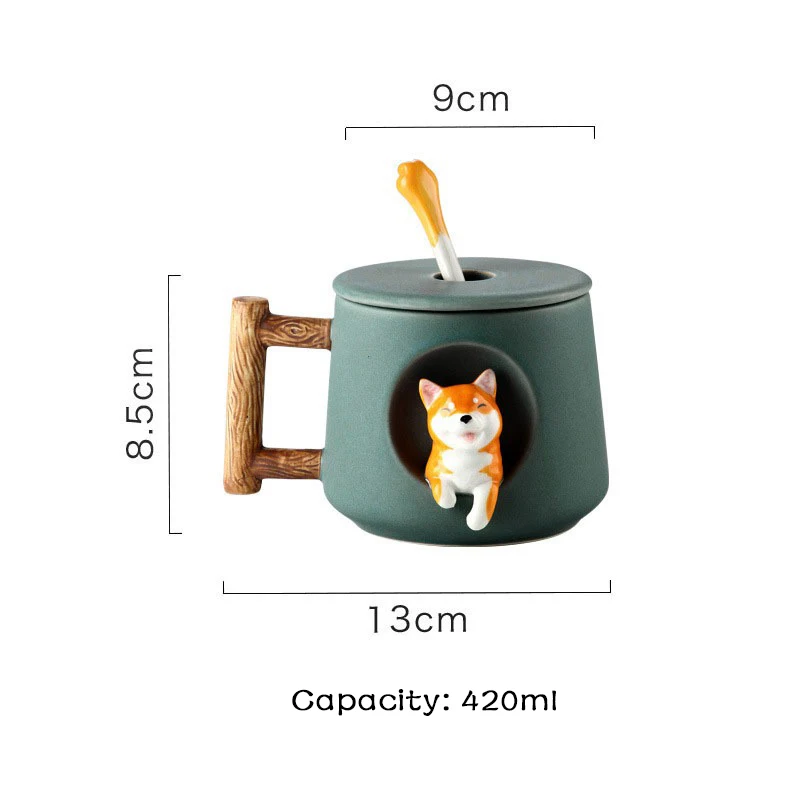 Керамическая кофейная кружка Ahdiha 420 мл, настенная 3D кружка Сиба-ину с крышкой, ложкой, чашка для воды, новинка, подарок, офисная кухонная утварь