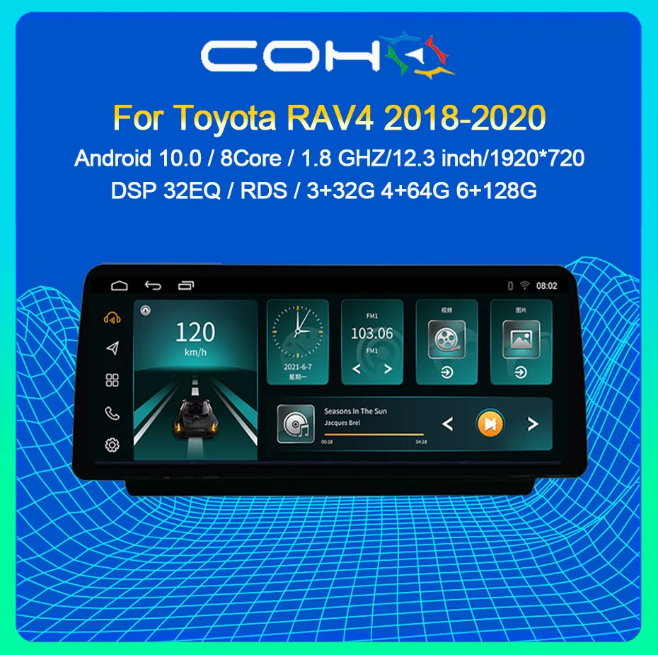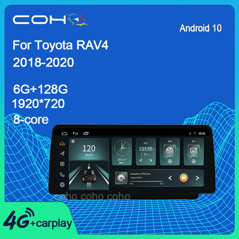 12,3 'coho для Toyota RAV 4 RAV4 2018-2020 Android 10 1920*720 4G Автомобильный радиоплеер навигация GPS 8-ядерный 6G + 128G радио мультимедиа
