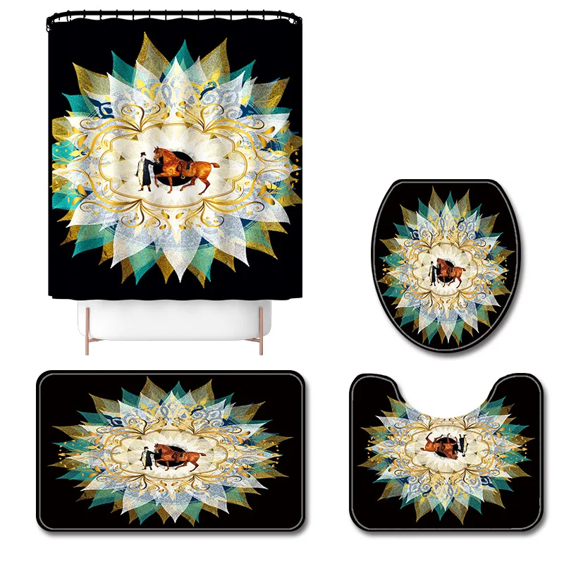Набор 1 (набор из 4 шт.):1 * коврик для ванной, комплект из 3 предметов + 1 шт. * занавеска для душа + Крючки