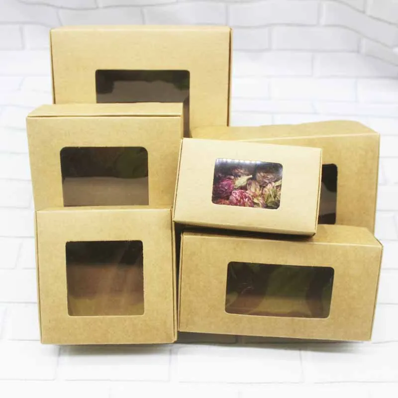 Оконная коробка 5 шт. DIY из крафт-бумаги с окном бумажная Подарочная коробка для упаковки торта, украшение для свадьбы, дома, вечерние упаковка для кексов, подарки на Рождество