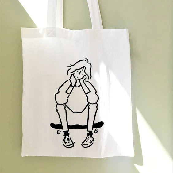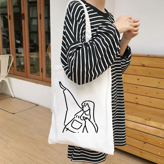 Холщовая женская сумка-тоут в стиле Харадзюку, многоразовая Милая К...