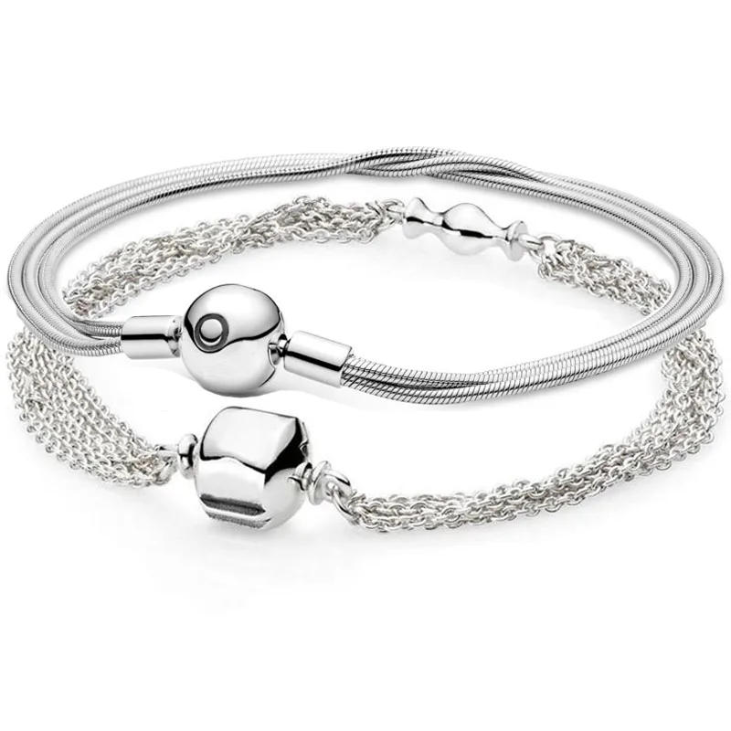 Браслет с застежкой в виде змеиной цепи, серебро 100% пробы