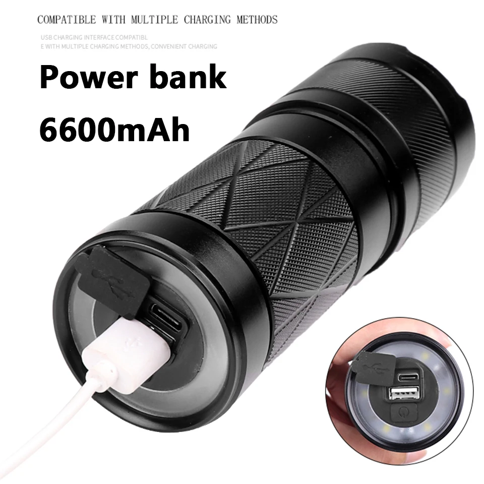 Мощный светодиодный фонарик XHP160, встроенный 11400 мАч, перезаряж...
