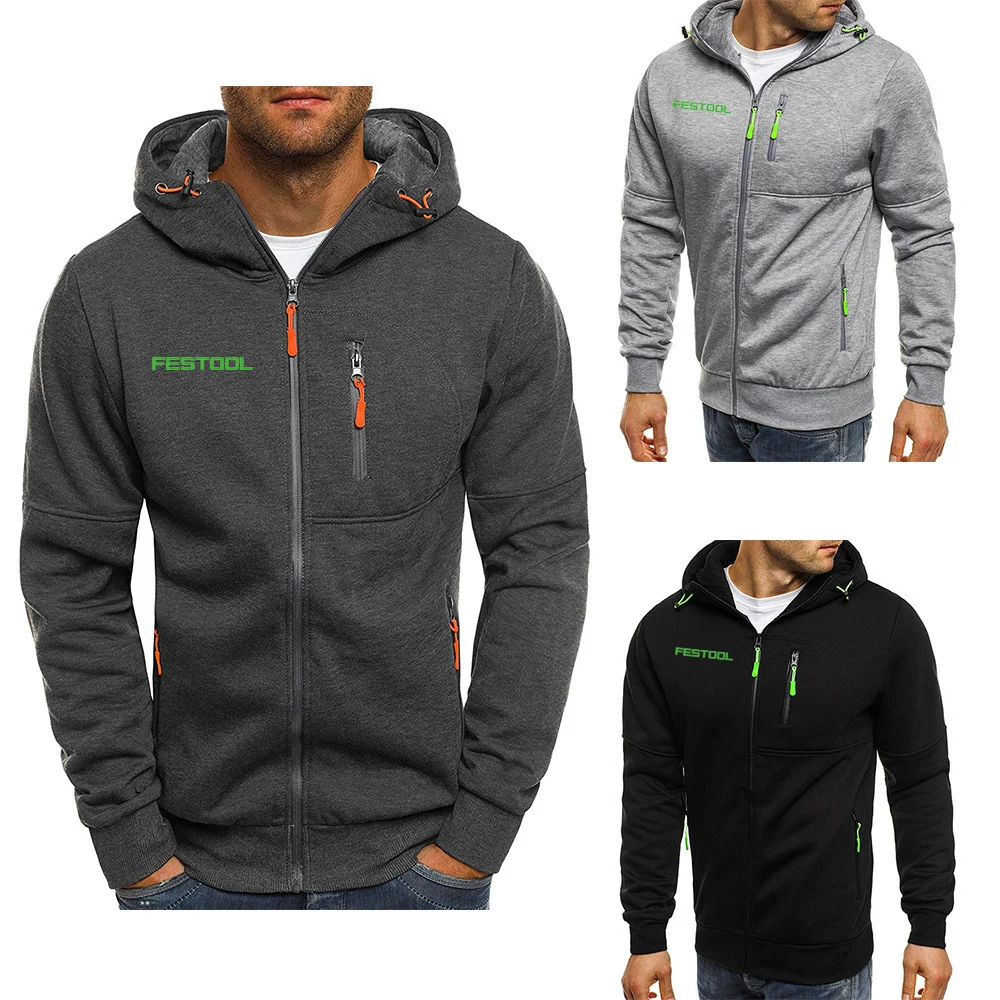 Мужская толстовка с капюшоном и принтом Festool, теплая верхняя одежда, куртка на молнии, Повседневная Удобная верхняя одежда