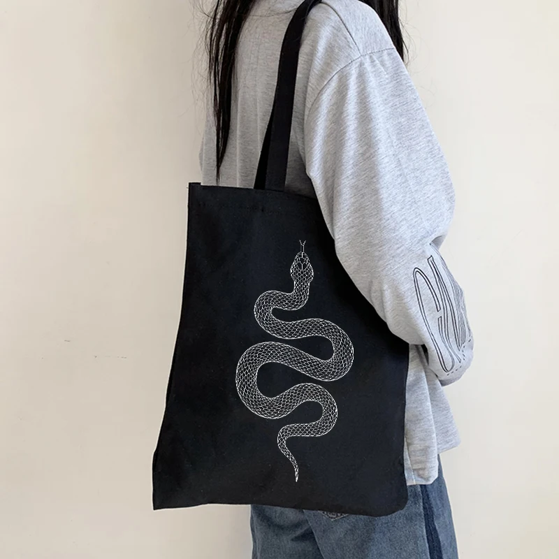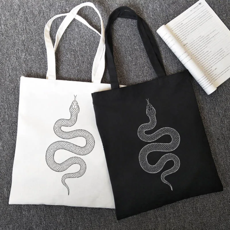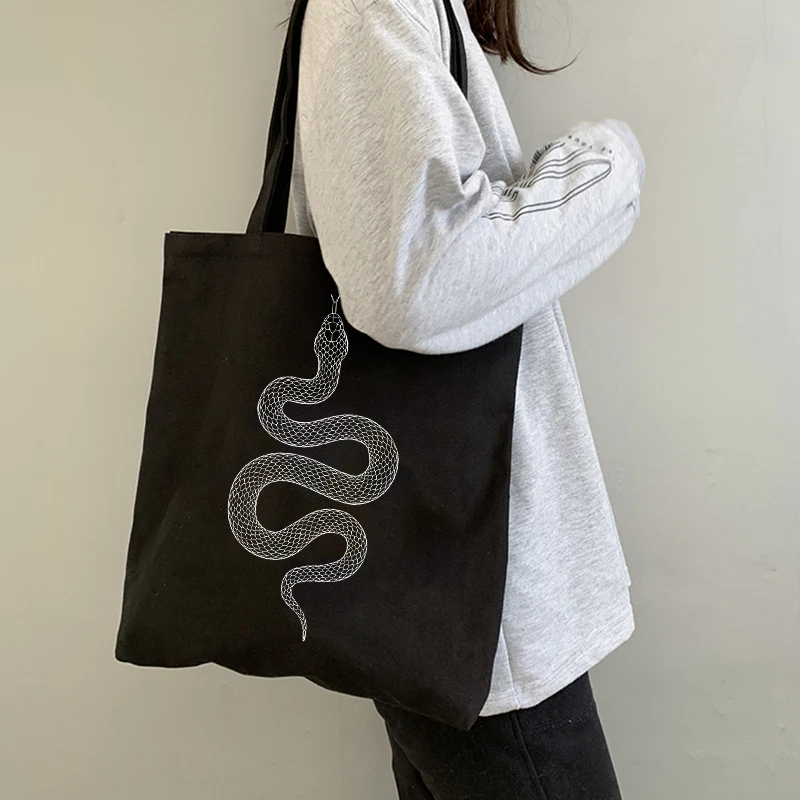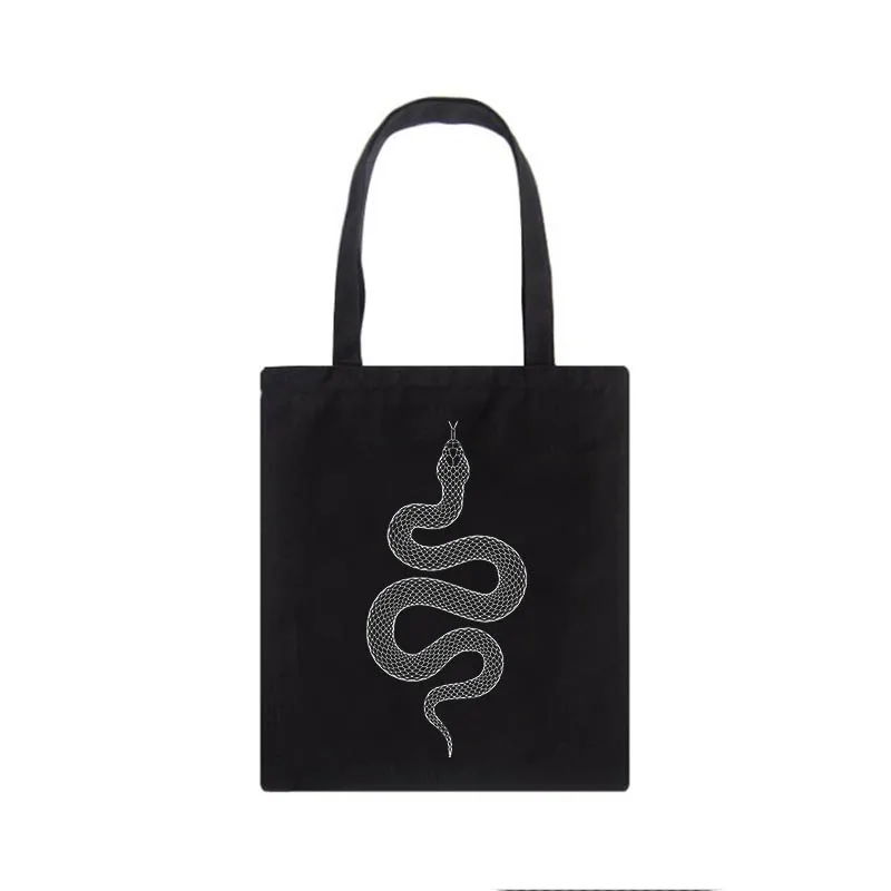 Холщовая Сумка Goth в виде змеи, повседневная вместительная темная ...