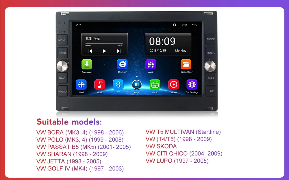 Автомагнитола 2 Din на платформе Android для Peugeot 307, VW PASSAT B5, JETTA BORA, GOLF 4, POLO MK5, MK4, MK3, T5, мультимедийный плеер, GPS-навигация