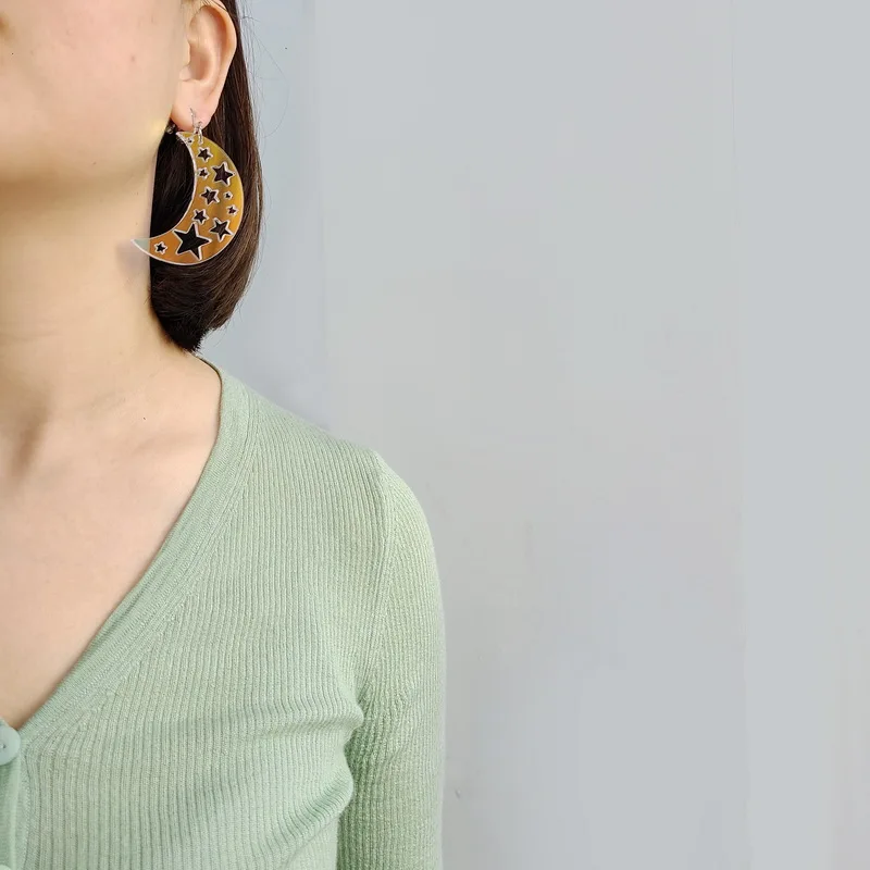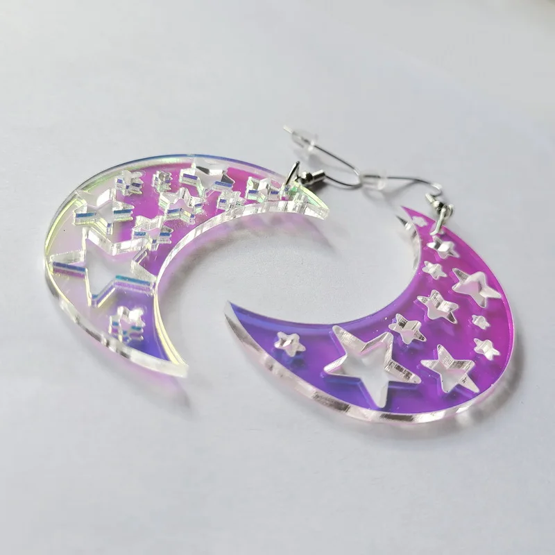 Переливающаяся луна серьги полумесяц звезды большой прозрачный Небесный Космос космический Perspex акриловое заявление