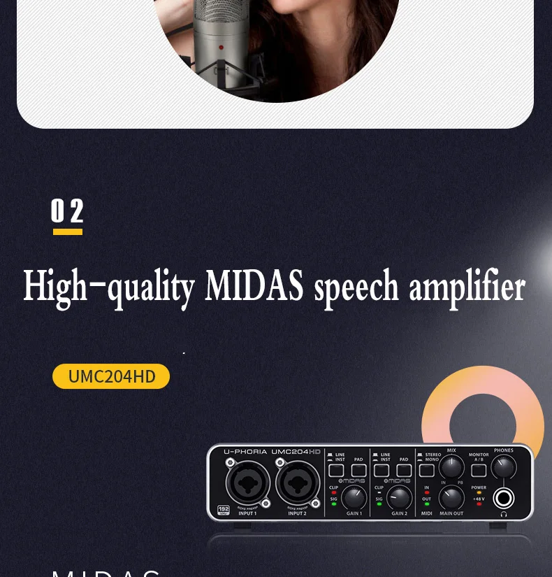 Оригинальный звуковой интерфейс BEHRINGER UMC202HD, микрофон, усили...