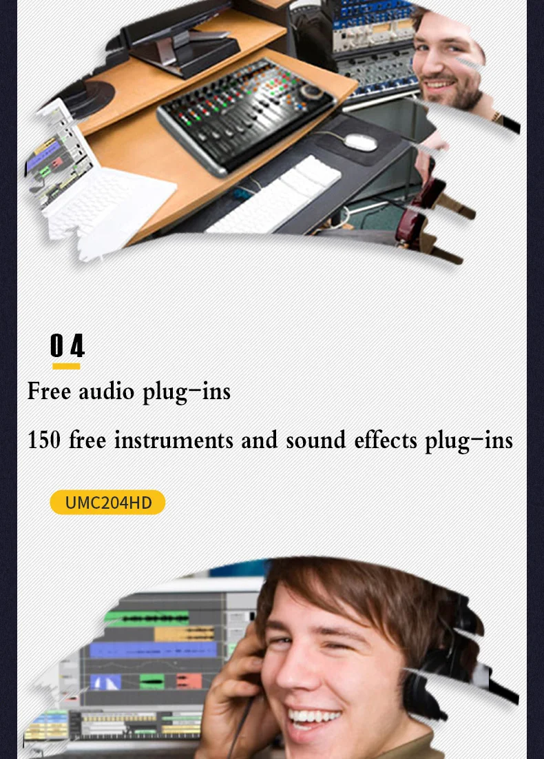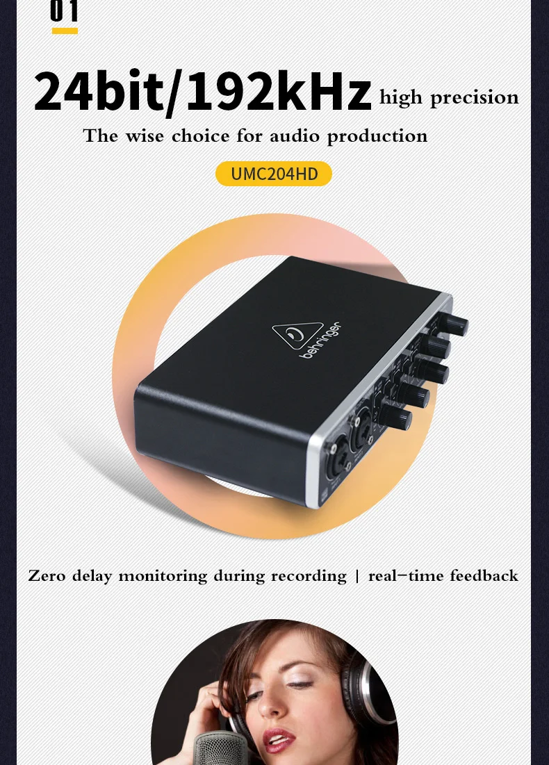 100% оригинальная звуковая карта Behringer UMC204HD с аудио интерфейсом, независимая внешняя звуковая карта для записи для прямого эфира