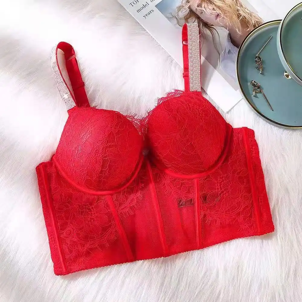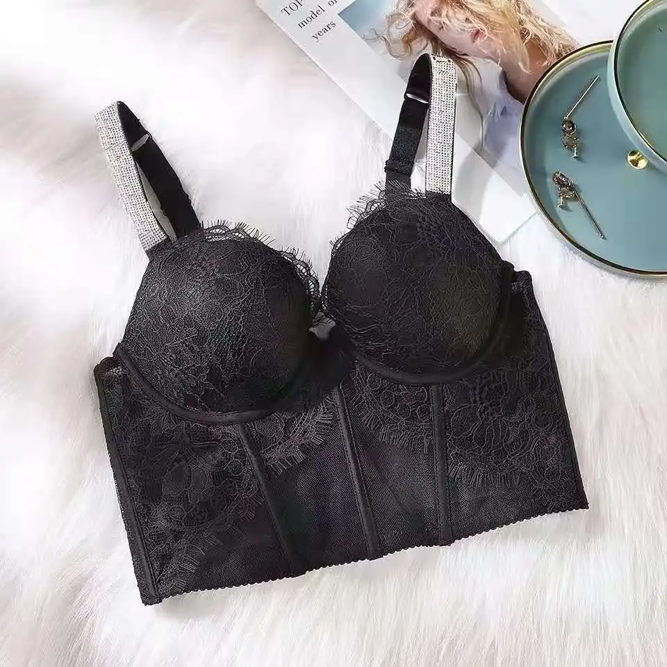Новая стразы бикини стринги кружевной бюстгальтер сексуальное женское белье дышащие Беспроводной бюстгальтер без косточек бесшовный бюстгальтер с эффектом пуш-ап, нижнее белье, Для женщин Secret