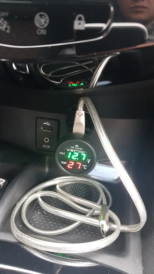 Тип: Автомобильный вольтметр, термометр, USB-зарядное устройство