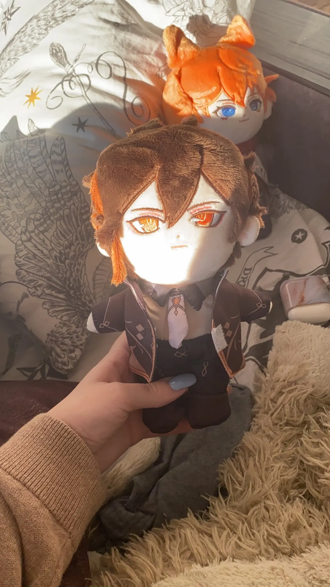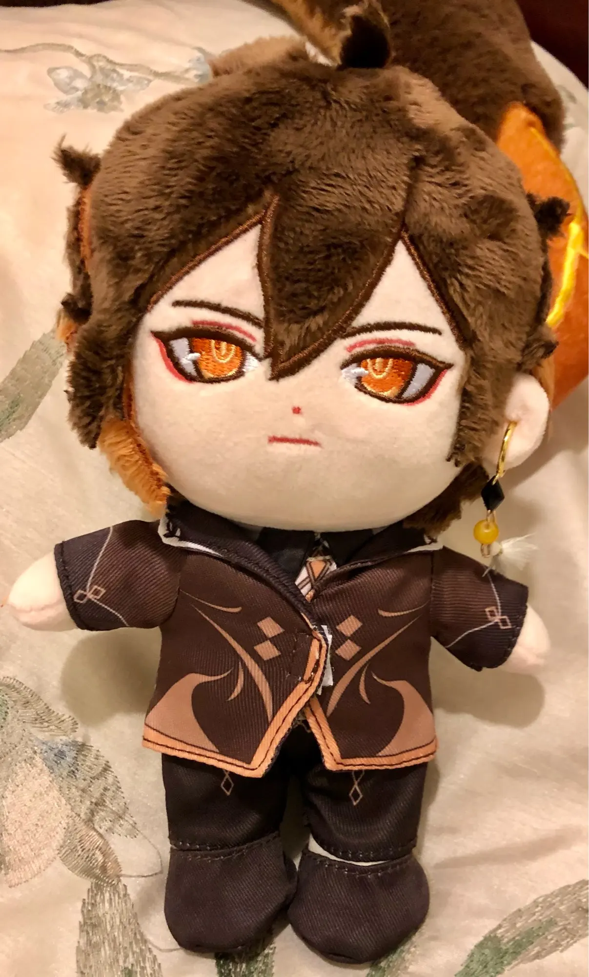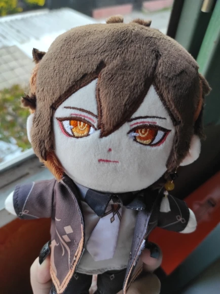 Кукла выглядит так же, как на фотографиях! И он, безусловно, очень напоминает Zhongli. Вышивка лица Безупречная! Тем не менее, я думаю, что немного не хватает на более мелкие детали, такие как волосы и одежда: Очень мягкие волосы, но его хвостик/ахож немного хлипкий и шершавый. Одежда имеет красивый рисунок, напечатанный на них, но они плотно надеваются, и некоторые крылья и липучки показаны. Но не поймите меня неправильно! В целом, это отличная кукла Zhongli! Продавец тоже отличный! Очень внимательный и коммуникативный.