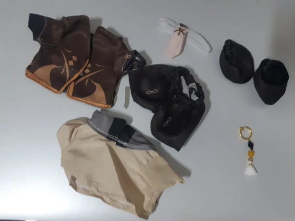 Не совсем то, что я ожидала. 1) В сравнении с Сяо он маленький и полненький. И в целом выглядит на его фоне странно. Так как он меньше ростом, то ручки естественно тоже оказались маленькими из-за чего рубашка и пиджак как будто ему на вырост XD 2) Одежда не очень удобно одевается, а вариант с ботинками далёк от идеала (так как они легко могут упасть и потеряться), лучше это были как носки у Сяо. Штаны с большим количеством складок, неудачно был пошит. Рубашку пришлось гладить, так как приехала с большим количеством складок. Пиджак не застёгивается, а липучки было решено распороть в угоду эстетике. В остальном все неплохо. Проделана хорошая работа. Да, есть недочёты, но это нормально. В общем и целом человек, которому я буду его дарить доволен. А большего мне и не надо. Буду надеяться, что если в будущем буду заказывать на него одежду, то все будет хорошо. Ну или придется подгонять под его размер, что будет не очень хорошо...