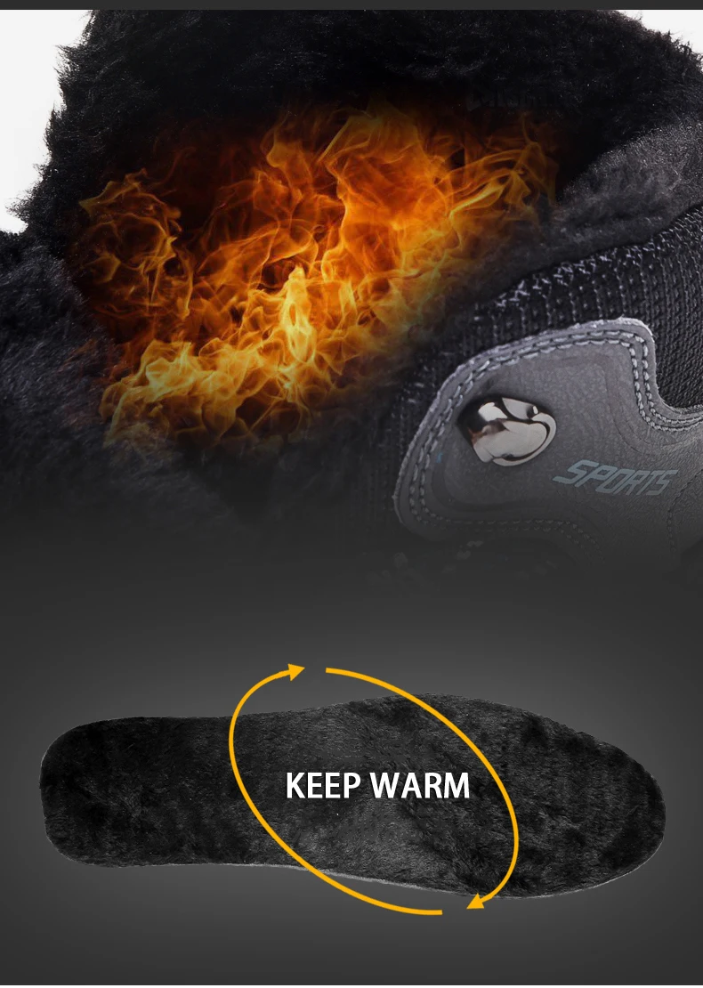 Мужские ботинки с плюшевой подкладкой, теплые водонепроницаемые ботинки до щиколотки, рабочая обувь, уличные походные ботинки, для зимы, размера плюс, 47