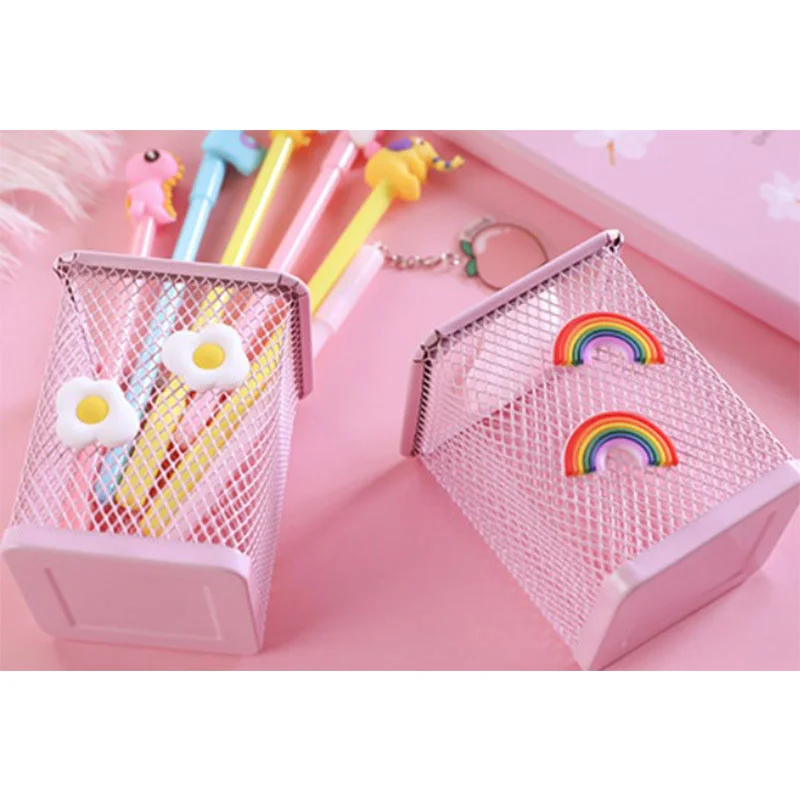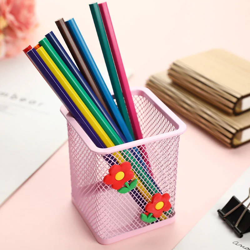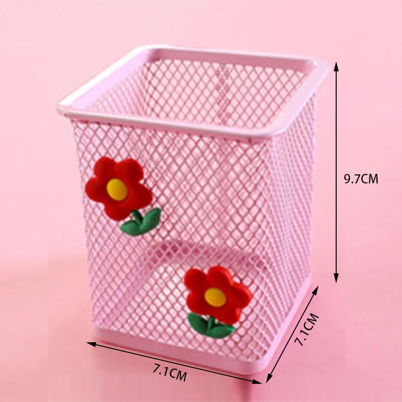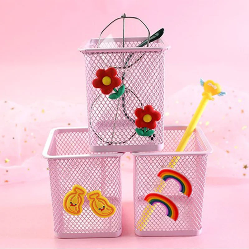 1 шт., розовый металлический держатель для ручек, офисный Органайзер, косметический квадратный карандаш, подставка для ручек, Канцелярский контейнер, офисные школьные принадлежности