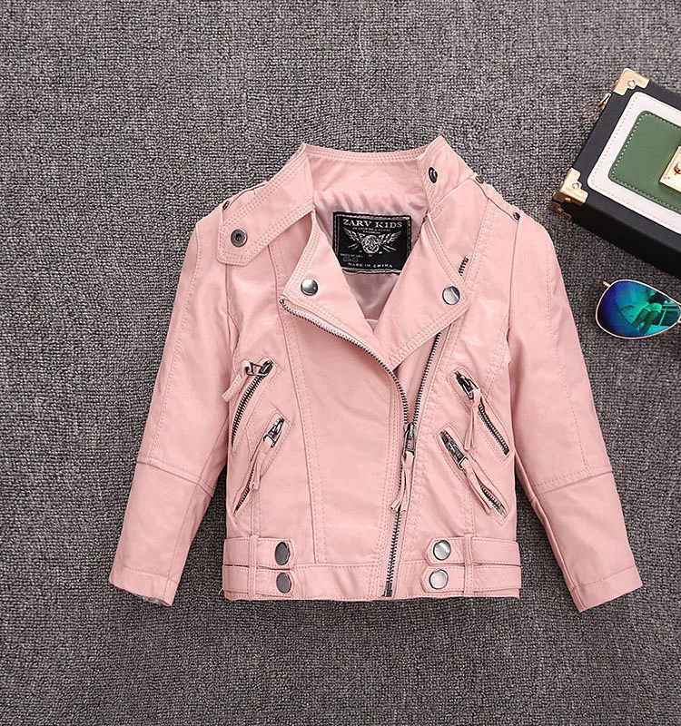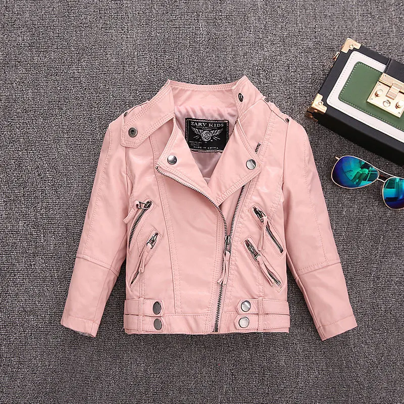 От 4 до 14 лет кожаные куртки для мальчиков и девочек; Детские осенние пальто розового, красного и черного цвета; Модные корейские детские пальто из искусственной кожи на молнии с воротником