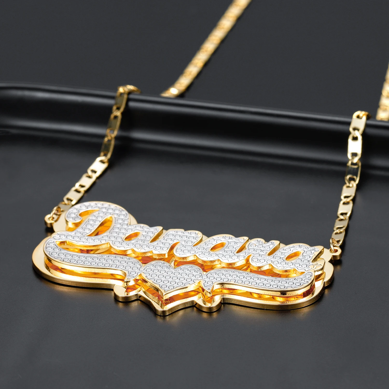 Ожерелье с именем на заказ, двойное позолоченное ожерелье 18 карат,...