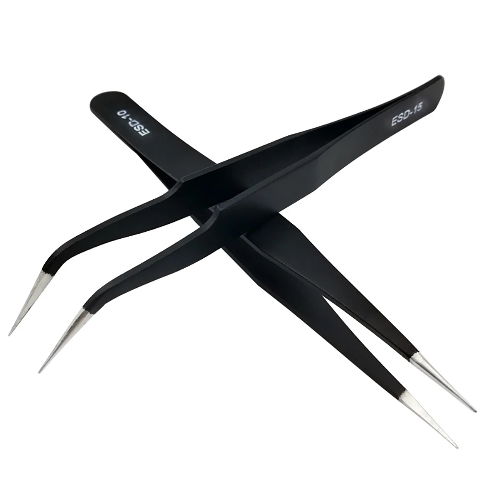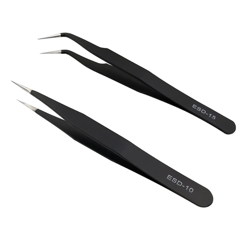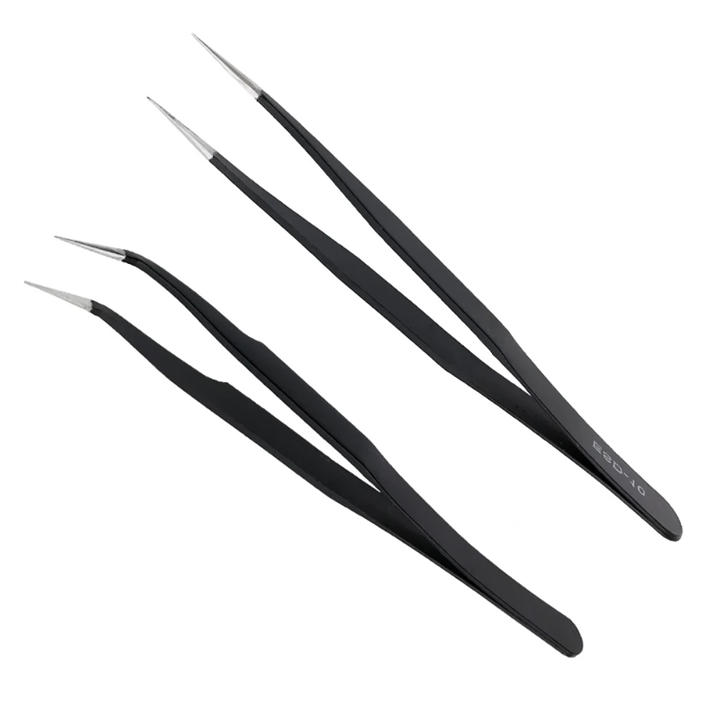 Многофункциональный Пинцет из нержавеющей стали, с налокотникамипрямыми прививочными перьями, вспомогательный инструмент, черный Антистатический пинцет