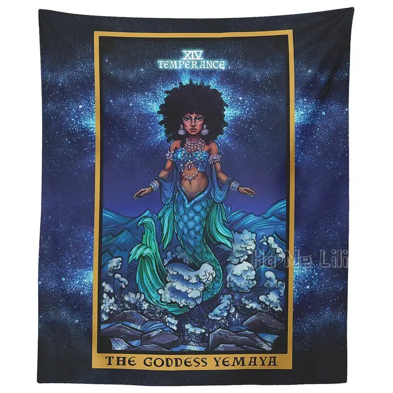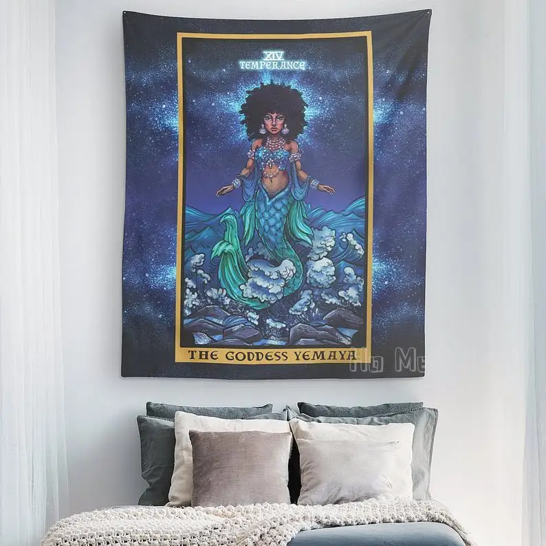 Гобелен с карточкой Таро и надписью королевы Yemaya, домашний декор, африканская настенная подвеска, искусство ведьмы