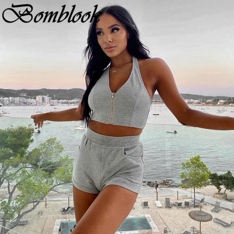 Женский спортивный костюм для фитнеса с шортами на молнии