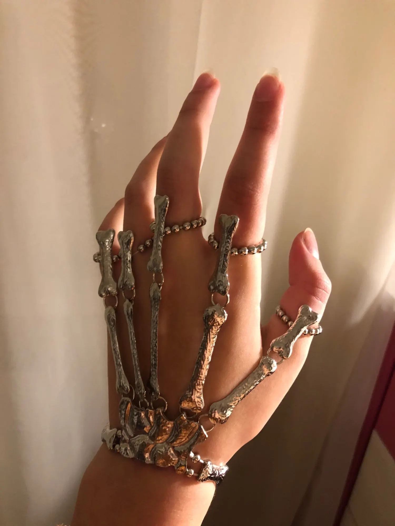 Панк Череп браслет, соединенный с кольцом на пальце Готический Скел...